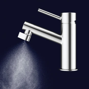 If you use an extreme tap nozzle you can save up to 98% of water, but still wash your hands, rinse your shaver and toothbrush – everything as normal – but you only use what you need.